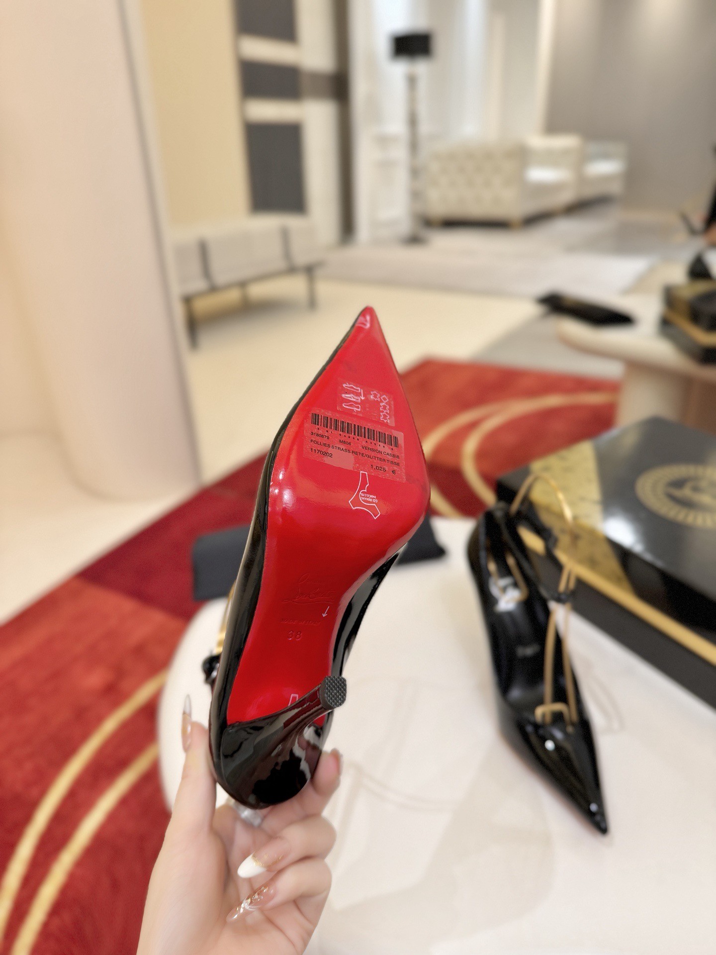 - Patent calfskin- Heel height : 100mm- Leather insole- Calfskin soleCome with Christian Louboutin dust bag, box and certificate card.