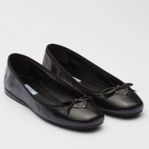 This style with sophisticated allure reinvents classic ballet flats and is made of soft nappa leather. The enameled metal triangle logo adds an iconic note to the shoe. Something you can wear with party dresses and jeans alike.