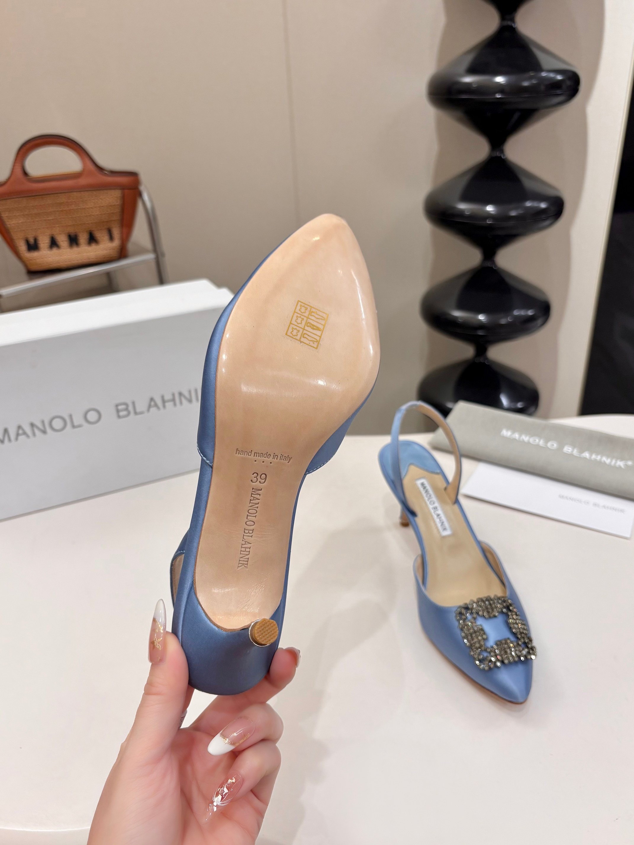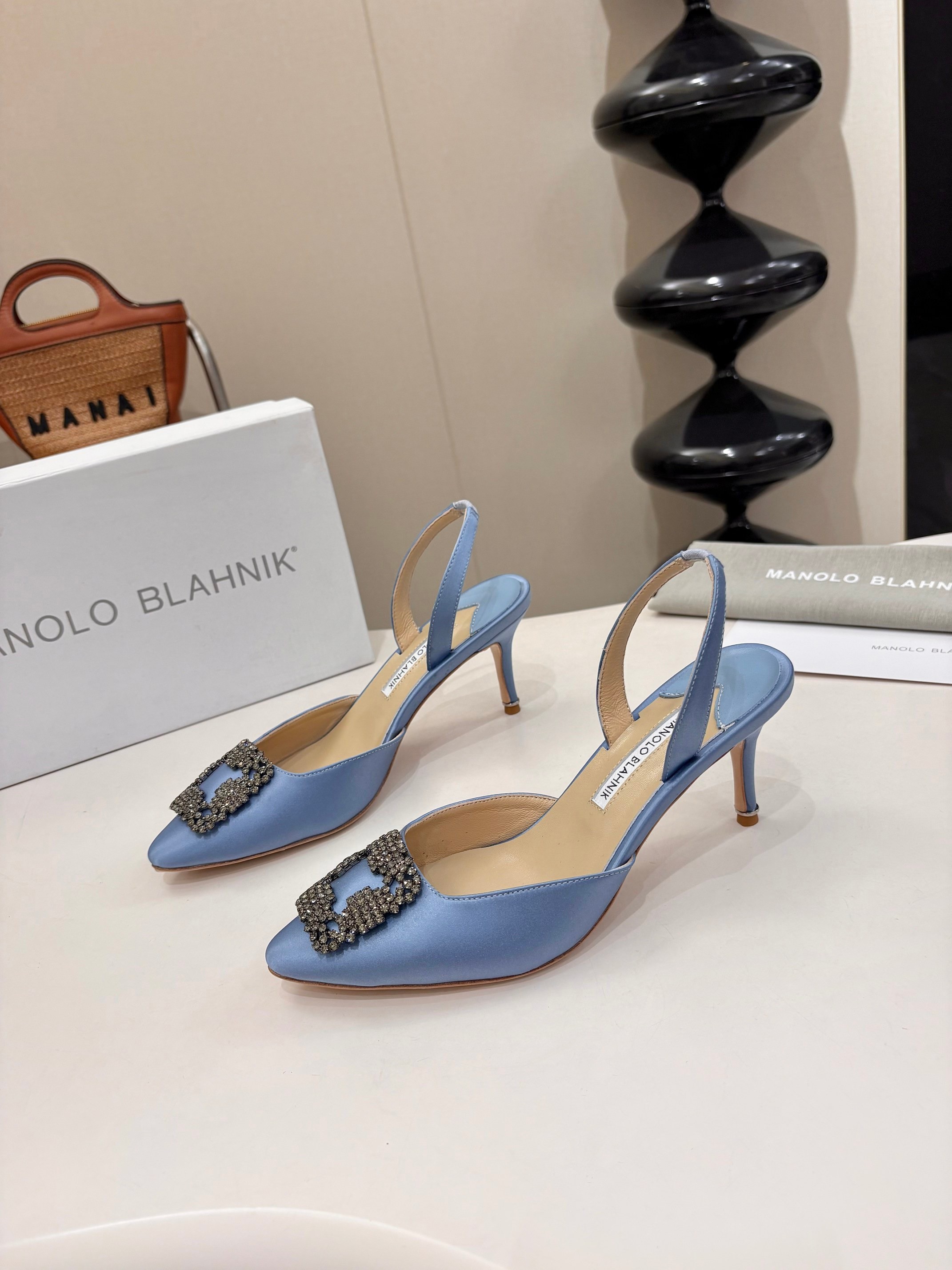 - Satin- Square crystal buckle- Calfskin sole- Lambskin lining- Heel measures 70 mmCome with Manolo Blahnik dust bag, box and certificate card.