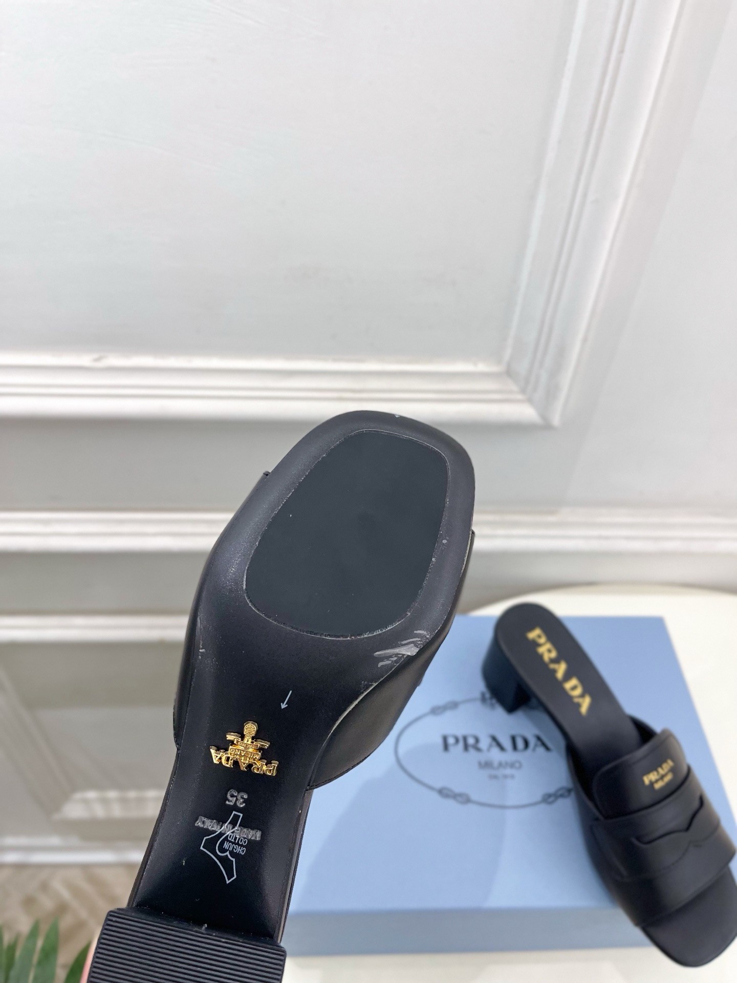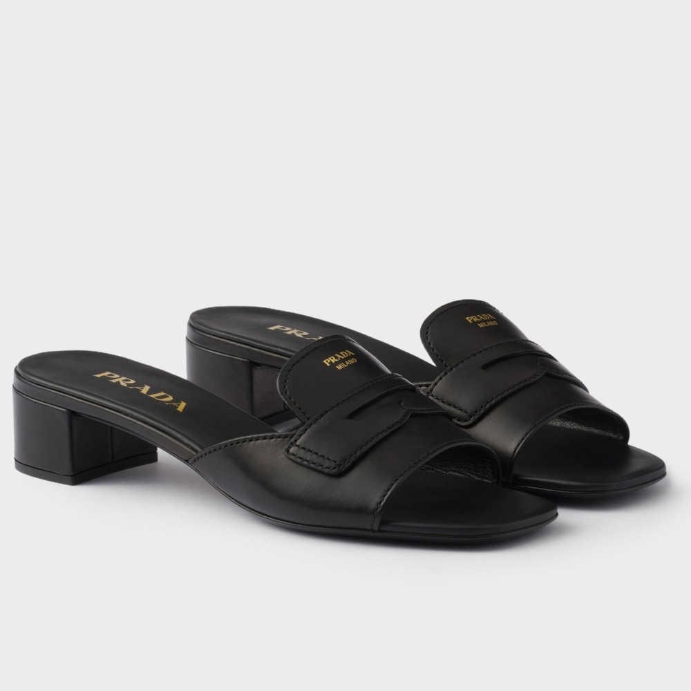 - Calfskin- Screen-printed logo- Leather sole with metal lettering logo- Leather-covered heel, 35 mmComes with Prada dust bag, certificate card and box.