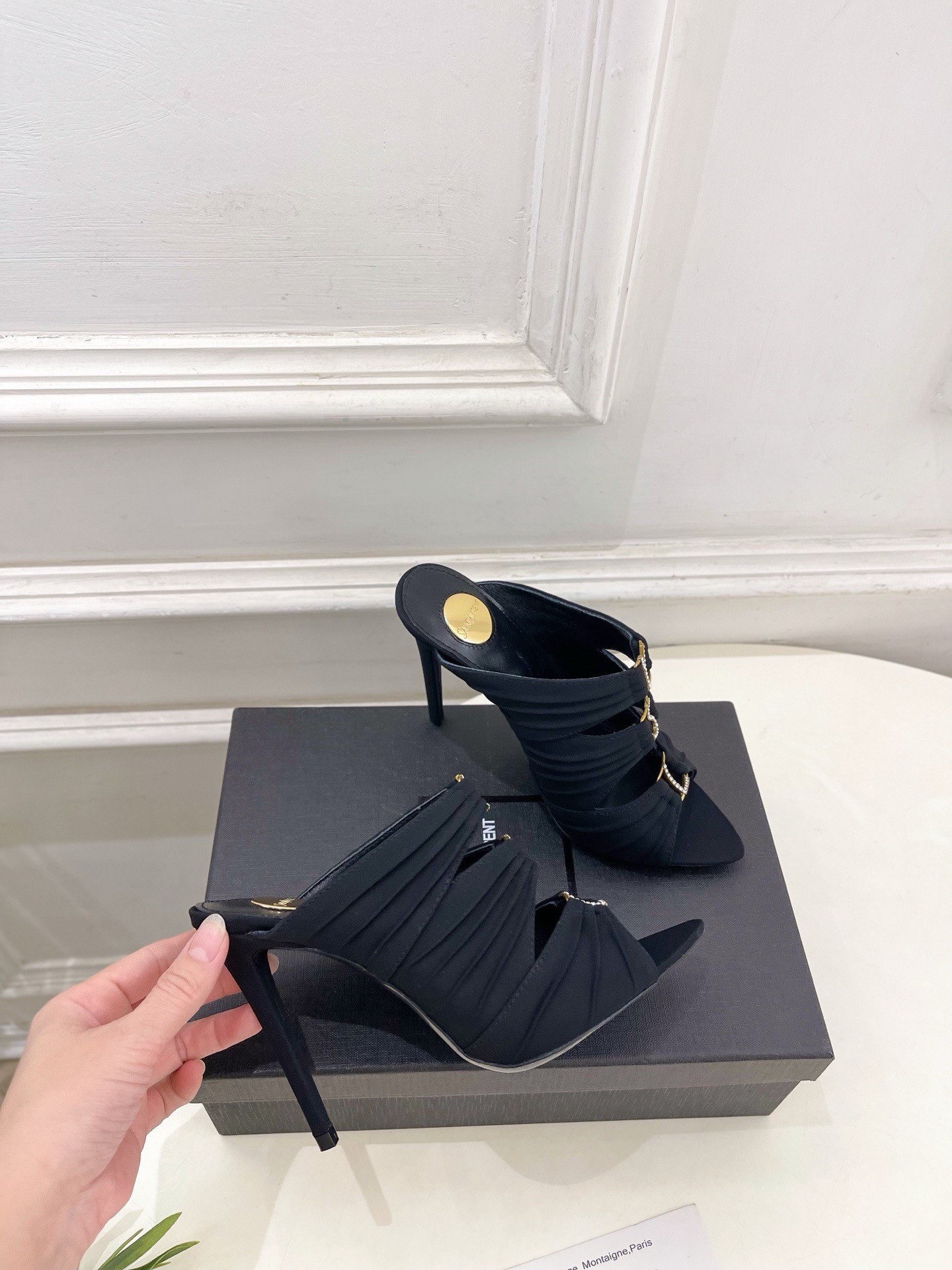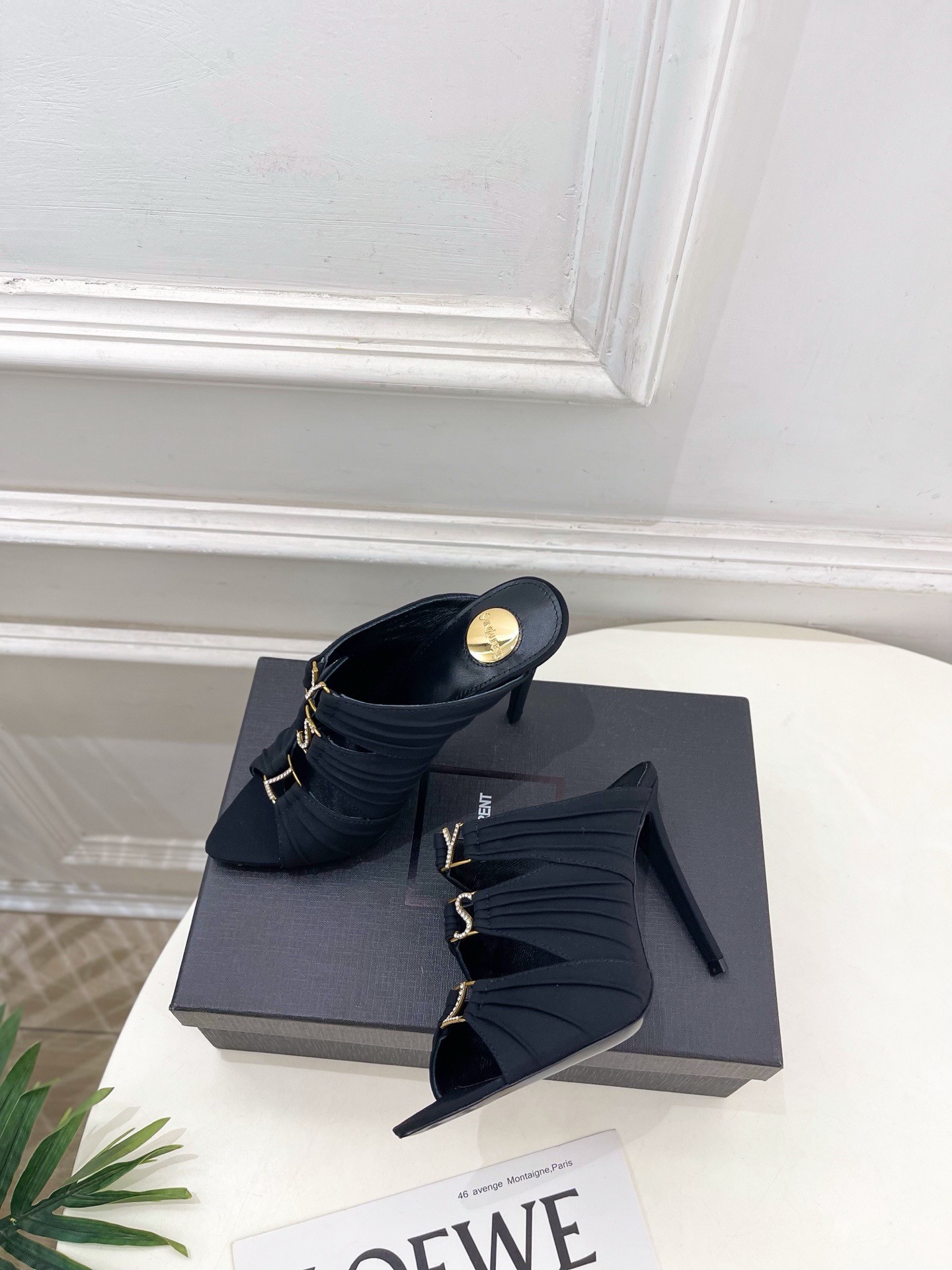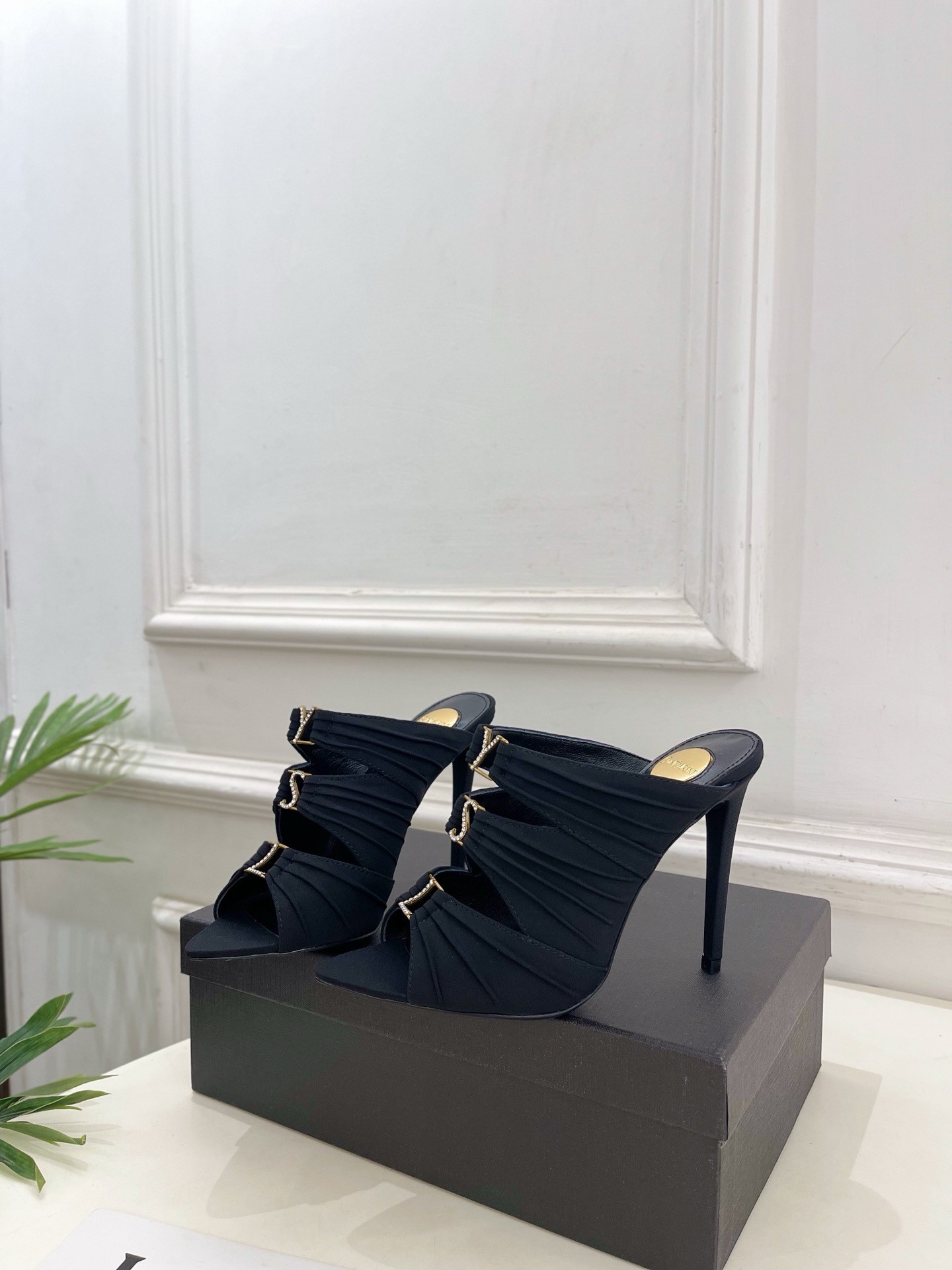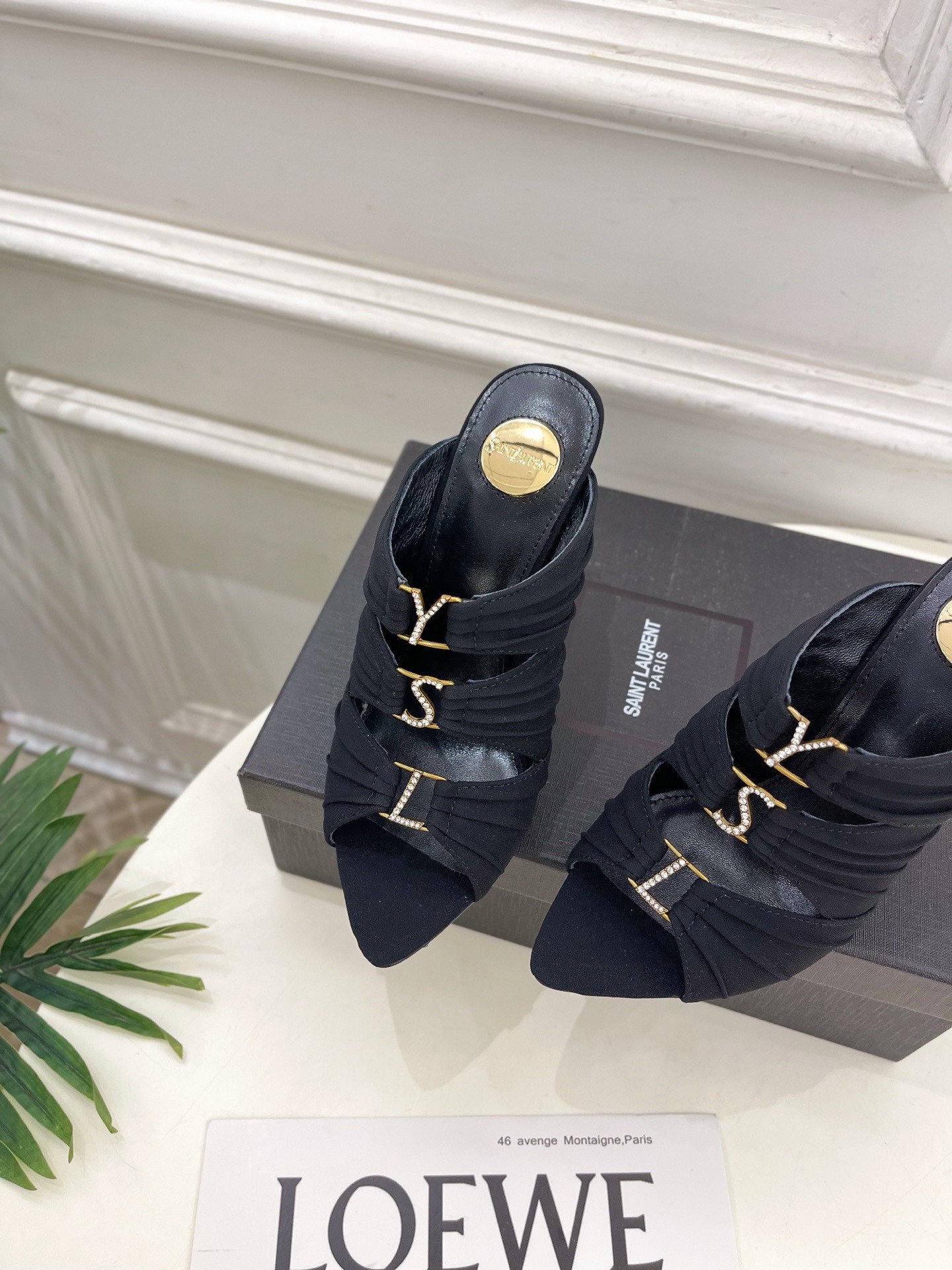 As much as Saint Laurent’s high heels are associated with after-dark glamour, the Maison proves it’s just as apt at making a bold statement for daylight hours. Enter the Emilie mules and their neatly gathered straps, which cleverly hold each letter of the YSL initials, outlined in shimmering embellished crystals. Stood on 110mm heels, they'll heighten the glamour of any look.