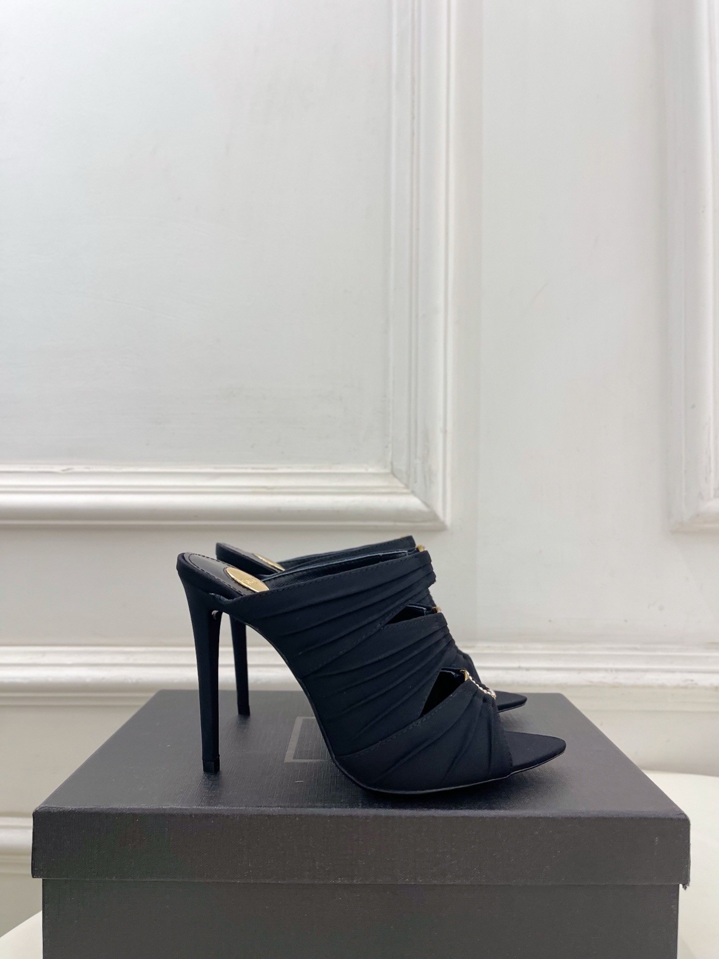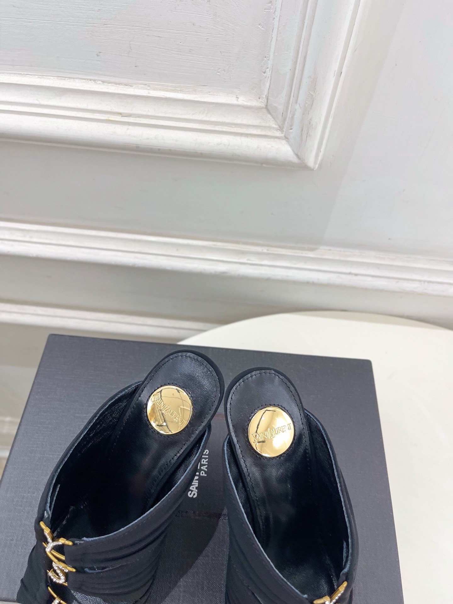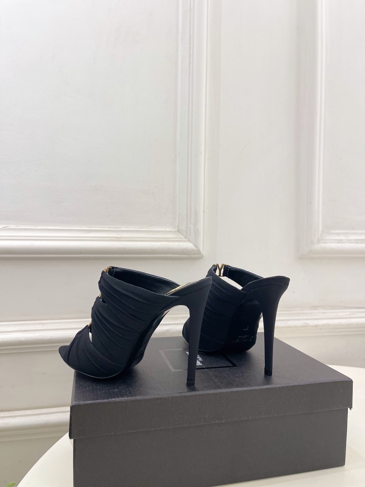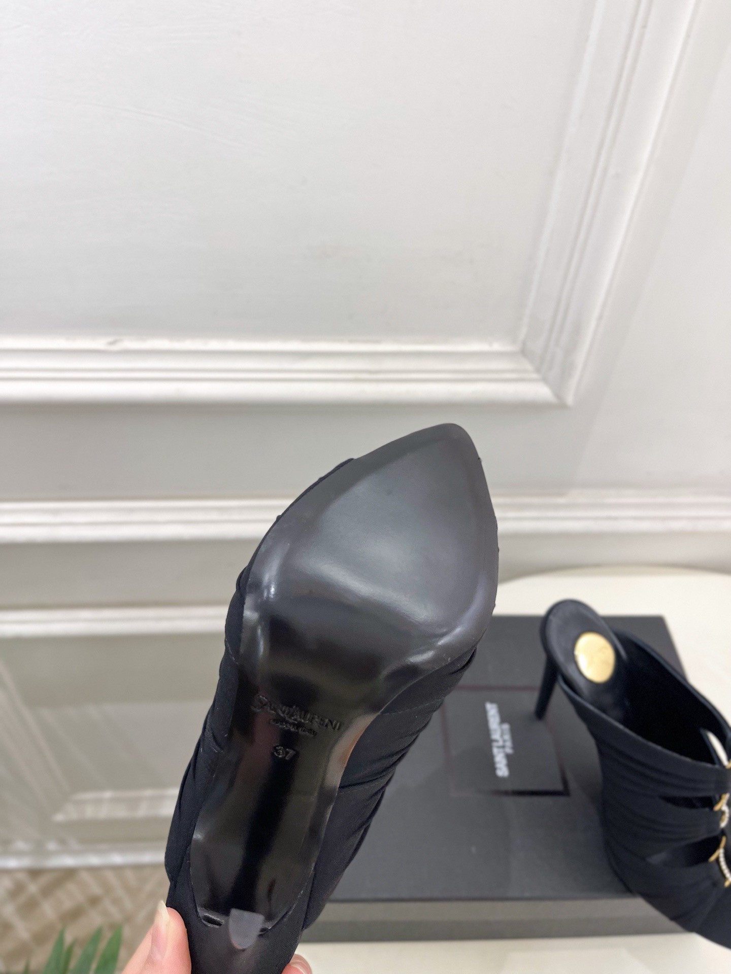 As much as Saint Laurent’s high heels are associated with after-dark glamour, the Maison proves it’s just as apt at making a bold statement for daylight hours. Enter the Emilie mules and their neatly gathered straps, which cleverly hold each letter of the YSL initials, outlined in shimmering embellished crystals. Stood on 110mm heels, they'll heighten the glamour of any look.