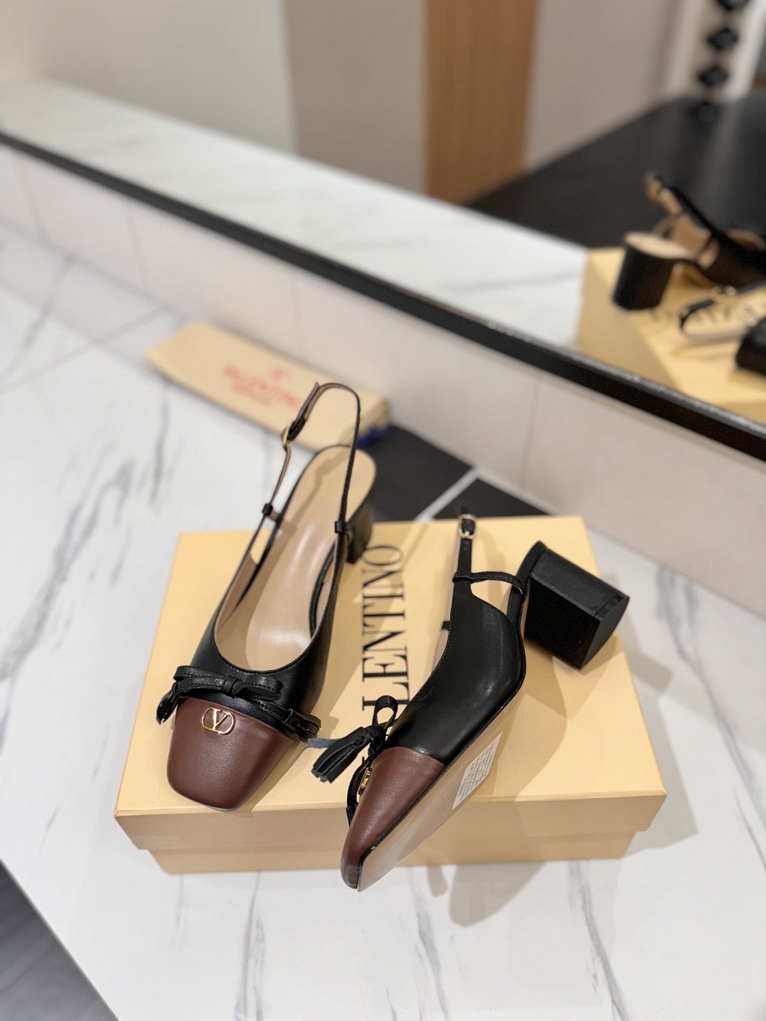 Valentino Garavani gives the classic slingback pumps a spirited update, introducing a bold contrast toe and a tassel flourish that dances with every step of the Valet du Roi style. Sculptural yet wearable, the lambskin pair strikes the balance between statement and sophistication, crafted for entrances that don’t go unnoticed. Lean into the classic mood and pair yours with a knee-length skirt.