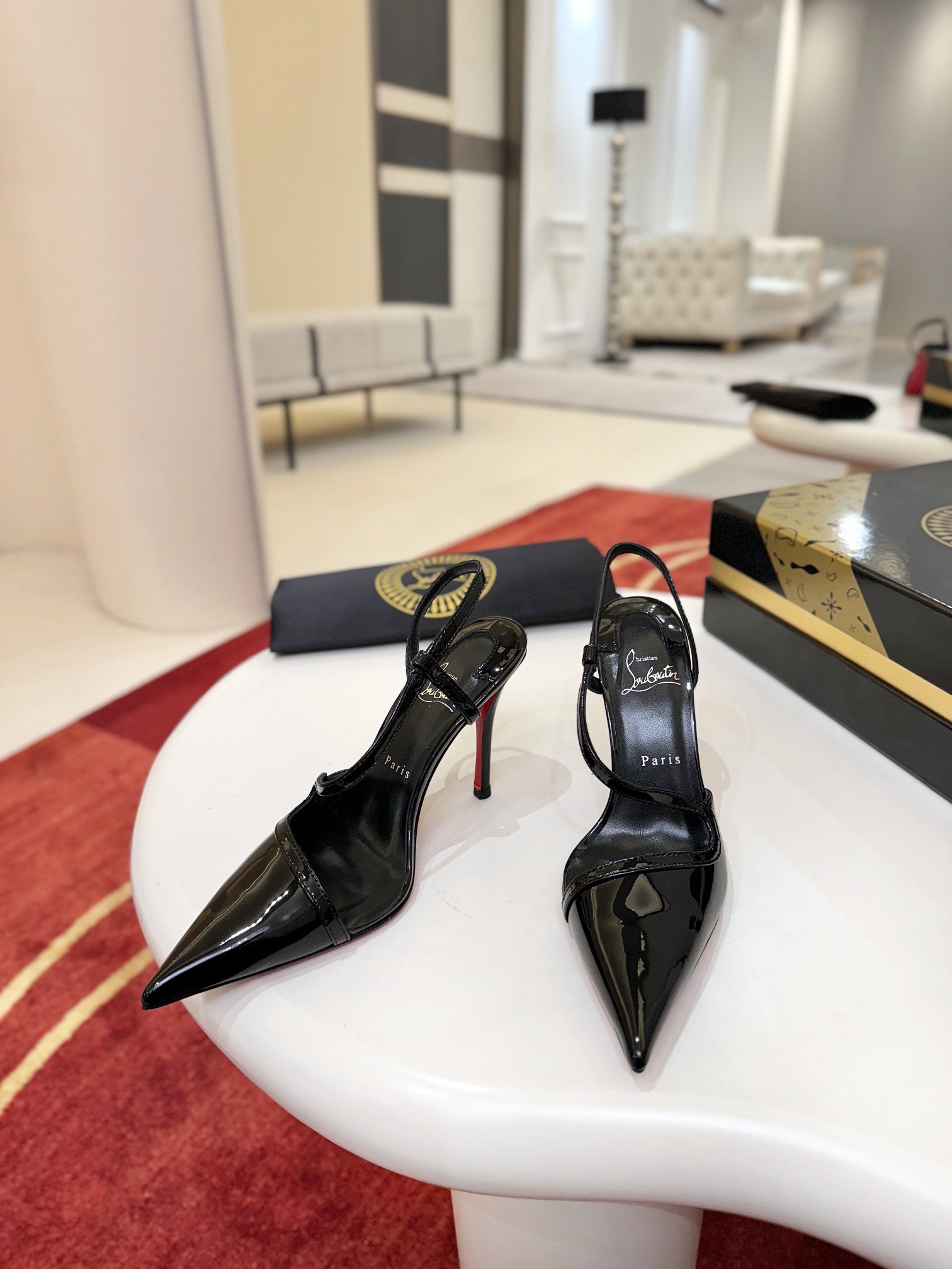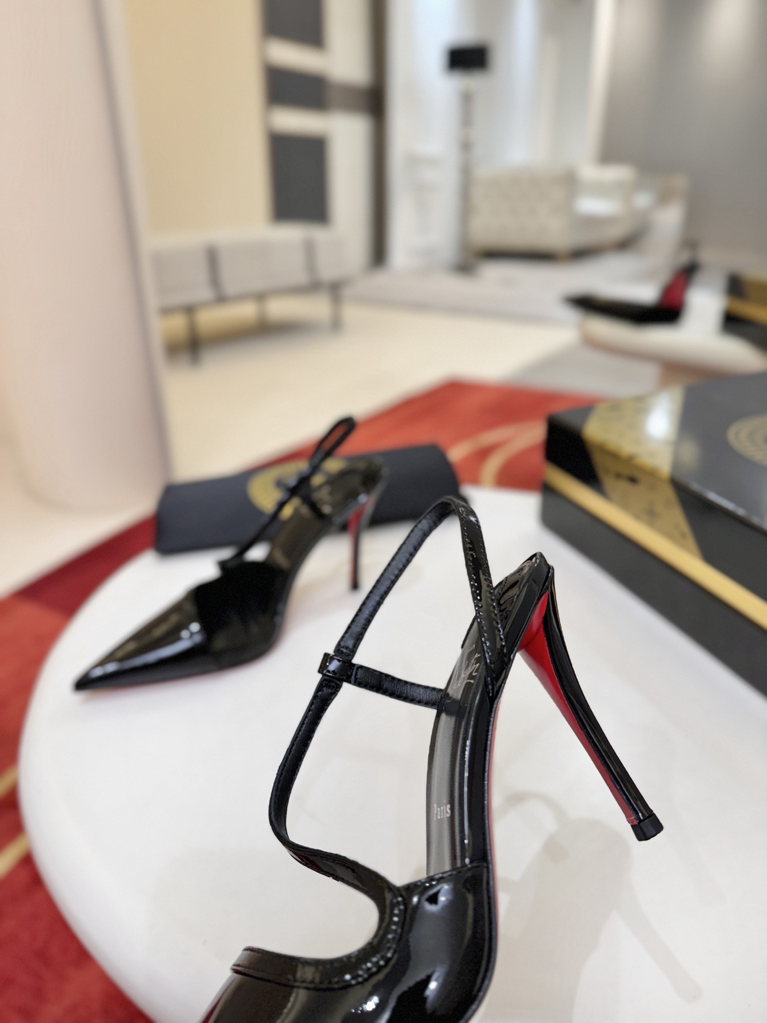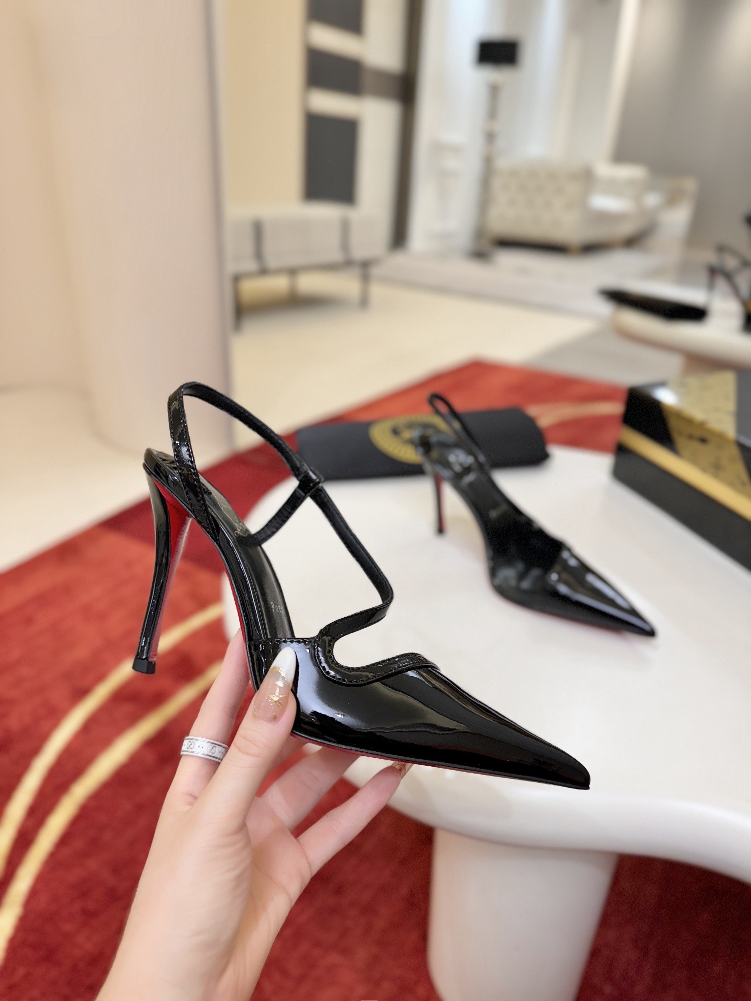 The Rosa Z slingback pump has striking curved lines and a refined style. This Maison Christian Louboutin sandal has a slim strap that elegantly wraps the foot alongside a padded insole. Crafted from patent calf leather, this delicate shoe is set on a 100 mm stiletto heel that reveals the iconic Loubi red sole. This model features an 'Everlasting Red' sole thanks to an innovative coating technique to ensure resistance and lasting vibrancy for our signature Louboutin red.